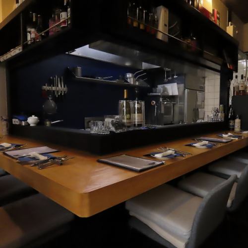 カウンター席は料理人の技を間近で見ることができる特等席。お一人様やデート利用におすすめです。その日のおすすめ、こだわりなども気軽にお聞きください。
